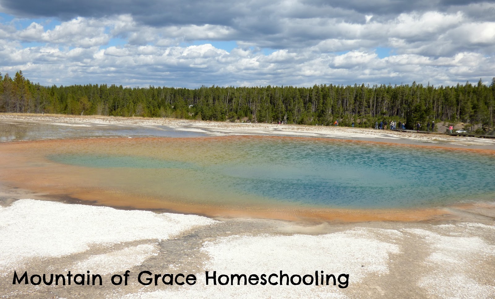 We walk along the boardwalk around the Black Sand Basin. We saw the Emerald Pool, the Rainbow Pool, and Sunset Lake.
